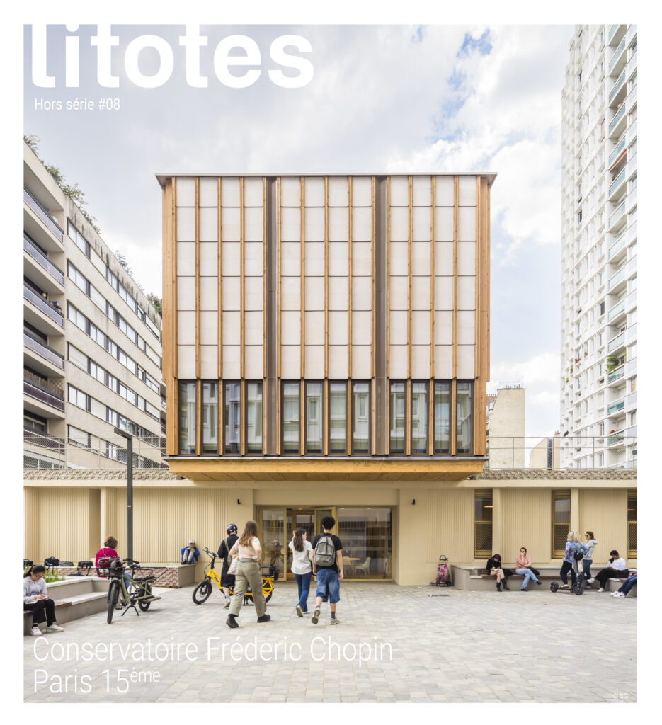Les études débutent en 2018. Les démolitions ont lieu en 2023 : le conservatoire émerge sur une nouvelle placette, respirant mais niché en cœur d’îlot. La séquence urbaine sur la rue Bargue ne permet que quelques secondes pour identifier l’entrée, que la lisibilité doit rendre immédiate tout en préservant la quiétude du site.